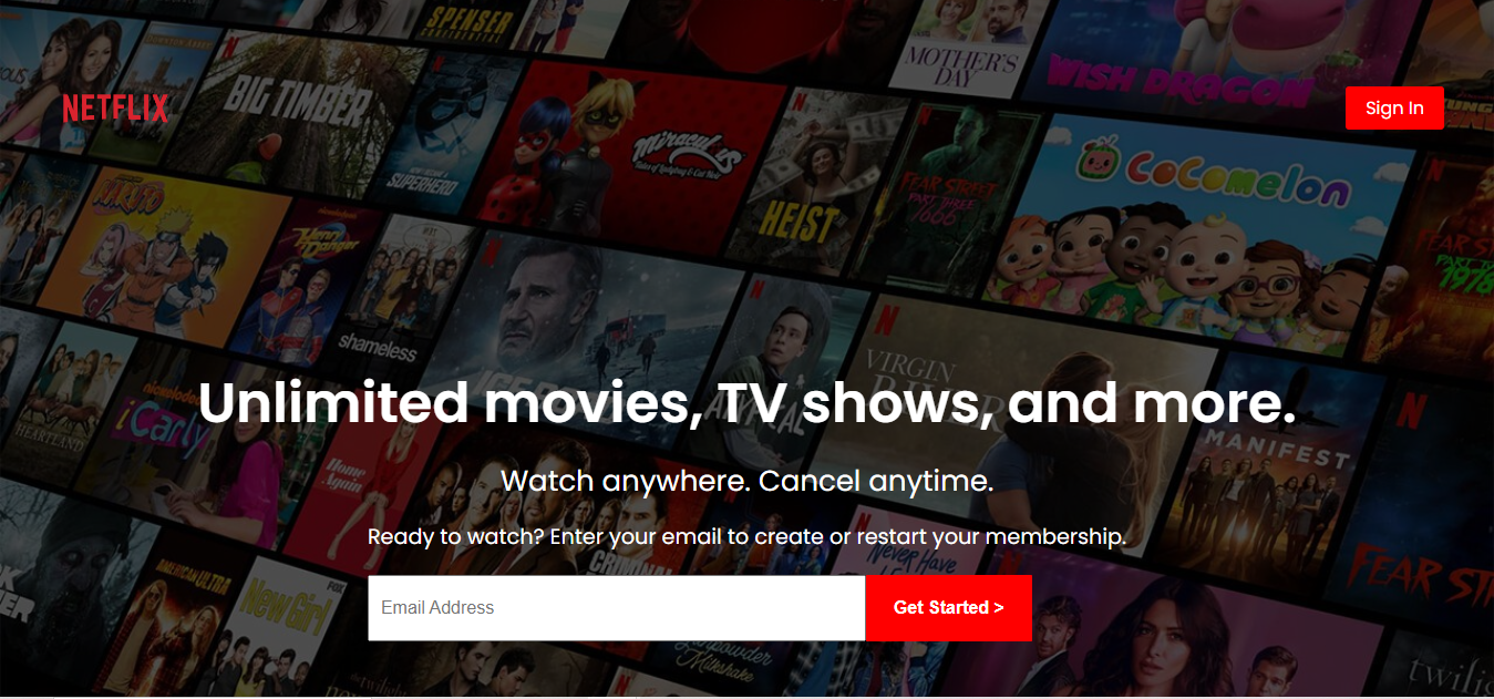 Zaio Coding School Netflix clone as a requirement for web development fundamentals built using HTML5 and CSS3.