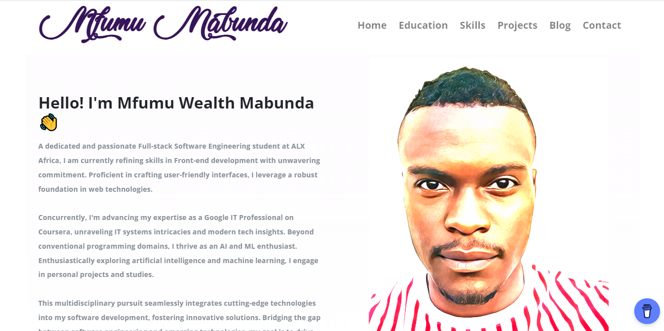 ALX Africa Software Engineering Specialization Phase Portfolio Project built using HTML5 and CSS3.