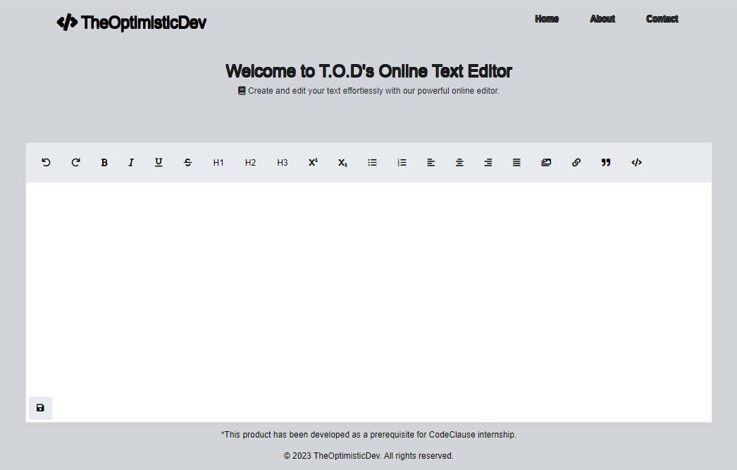 An online text editor built using HTML, CSS3, Javascript for CodeClause Internship.